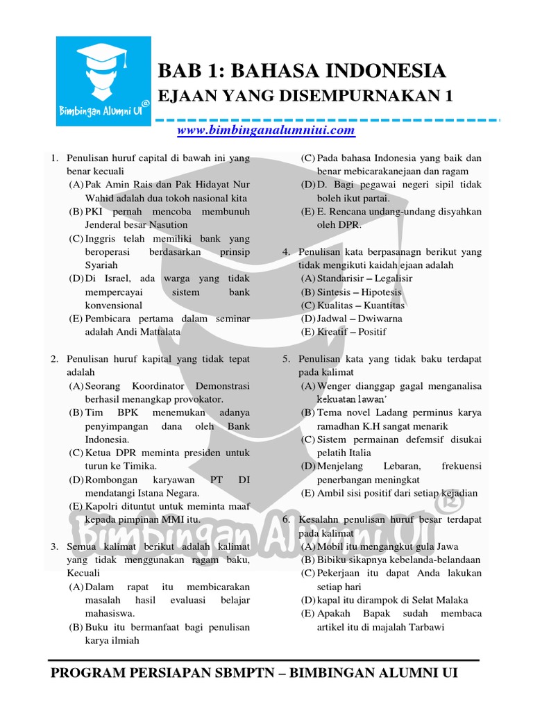 Soal bahasa indonesia latihan 1 sbmptn 2018 bimbingan alumni ui.