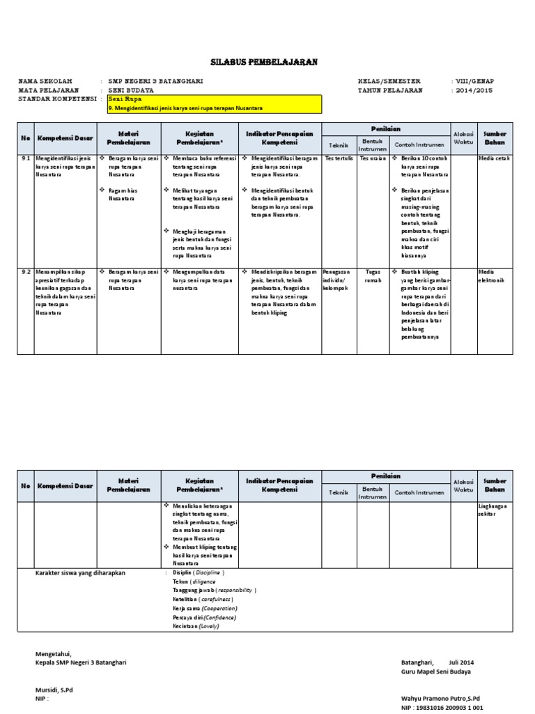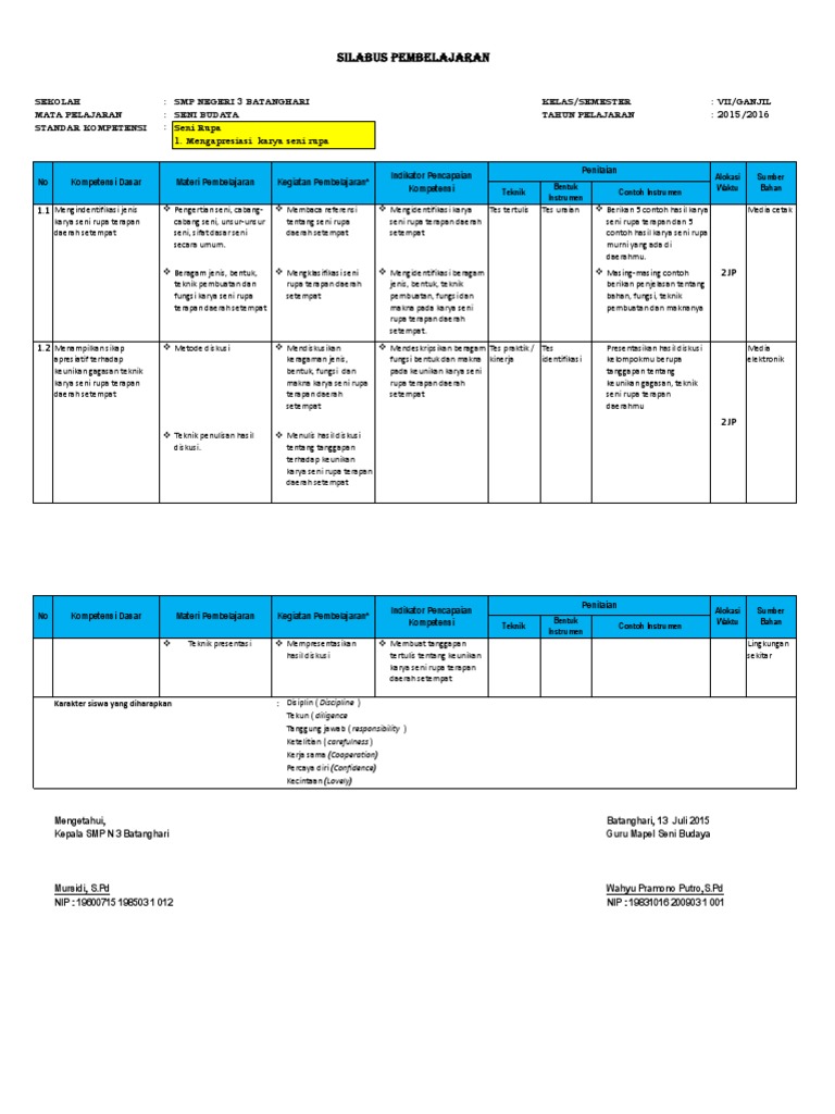 Perangkat pembelajaran seni budaya smp kurikulum 2013 semester 2. Please fill this form, we will try to download silabus seni budaya dan keterampilan berkarakter smp kelas vii semester 2. Smk cokroaminoto kotamobagu mata pelajaran : Kali ini kami bagikan salah satunya yakni silabus untuk mata pelajaran bahasa indonesia, bahasa inggris, bahasa sunda, bahasa jawa, matematika, ipa, ips, pai, pkn, penjaskes, seni budaya, prakarya, kurikulum 2013 (k13) jenjang smp/mts kelas 7 (vii) semester 1 dan 2 yang siap. Jika saat ini sedang membutuhkan kerangka silabus seni budaya k13 tingkat smp kelas 7 semester 1 dan semester 2, bisa langsung download di artikel ini bagian bawah.